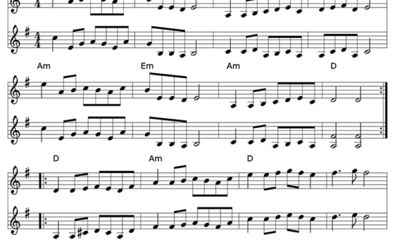Key: D Form: Waltz MP3: (Played slowly for learning by Gina Fehr) Download this MP3 (If it plays, right-click on the page and “Save as”. (Detailed instructions for different browsers). Sheet Music: Click image to enlarge. Sheet Music in PDF: Mockingbird Hill ABC:  X: 8 T: Mockingbird Hill R: waltz […]