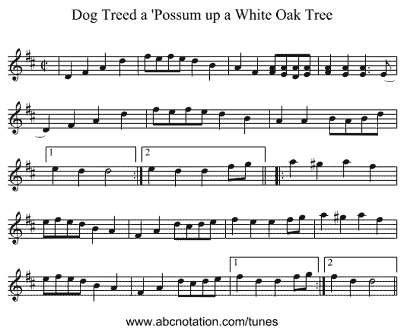 Sheet Music in PDF: dog-treed-a-possum-up-a-white-oak-tree