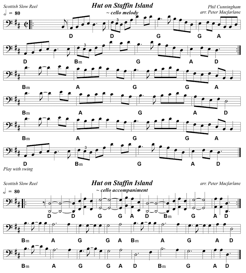 YouTube: (The Hut on Staffin Island (Cunningham), Shake a Leg (McCusker) then Wing Commander Donald MacKenzie (Cunningham))