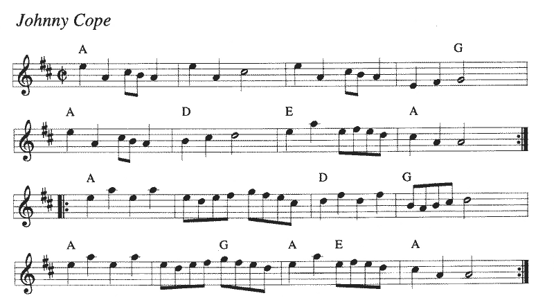 Notes: There. seem to be some other more complex tunes with “Johhny Cope” in their titles. Perhaps this old-time version was derived from one of them.